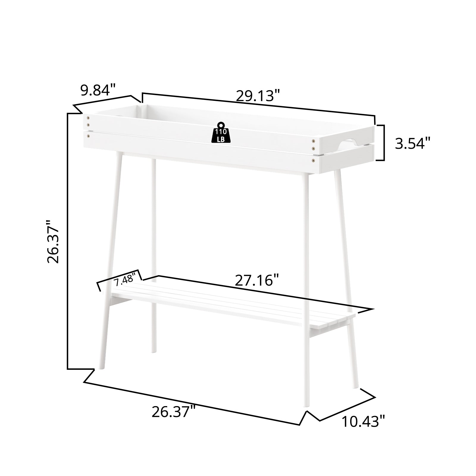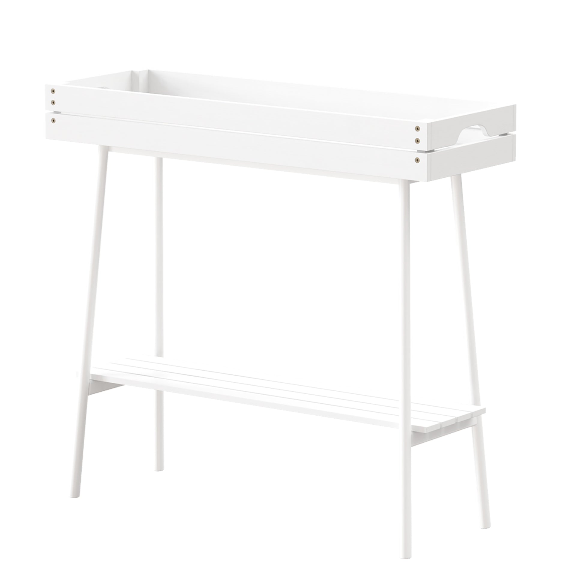 2-Tier Bamboo Plant Stand Table with Metal Legs (White)
