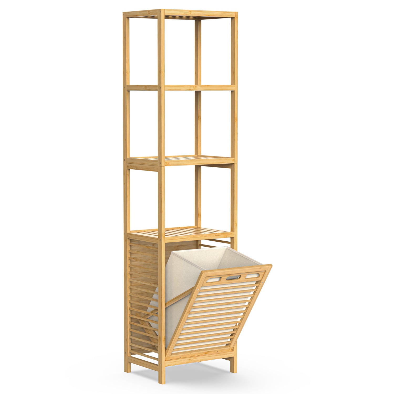 4-tier Bamboo Tilt-out Cabinet Laundry Hamper With Basket, Shelves (Beige Bag)