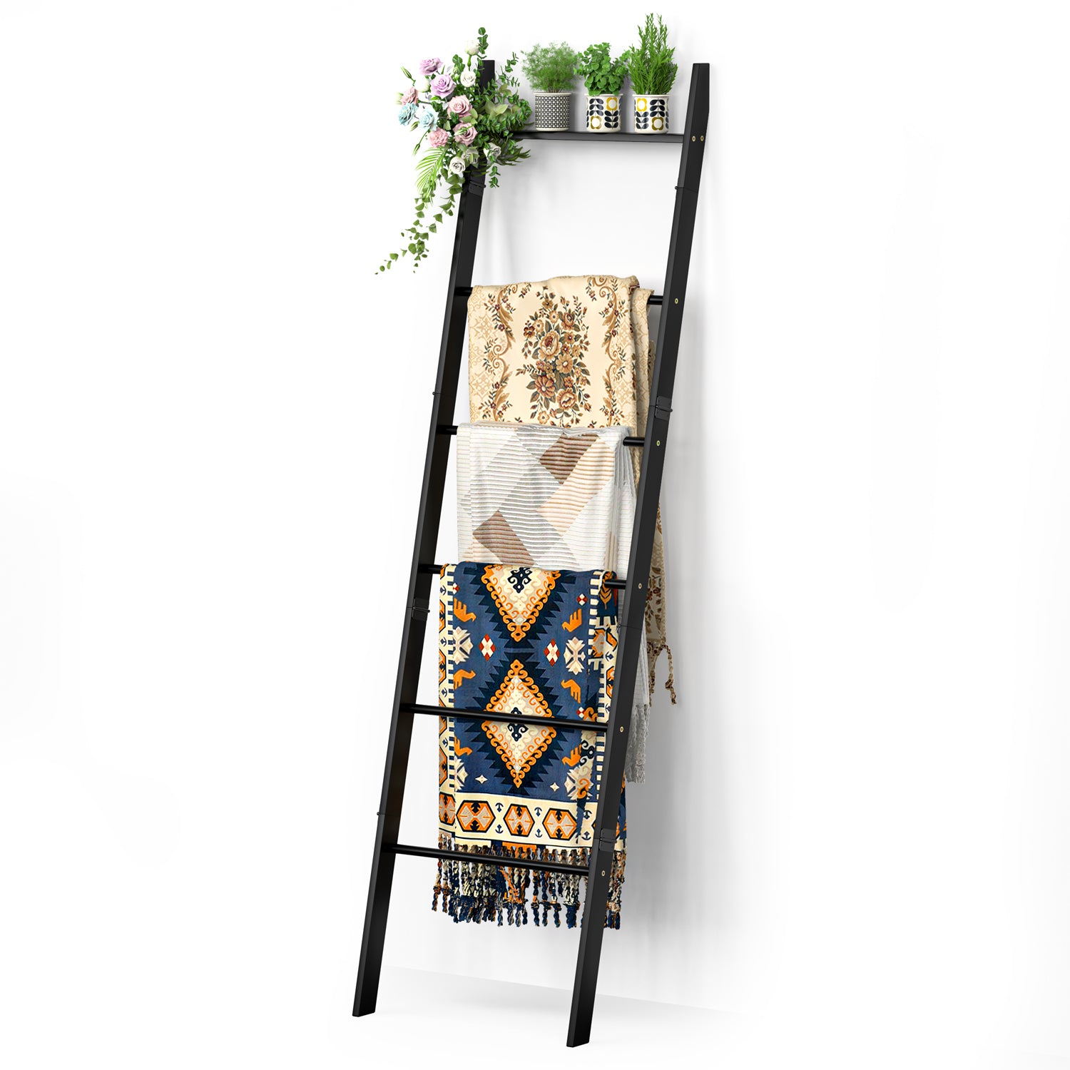 6-Tier Wall Leaning Blanket Ladder Shelf (Black)