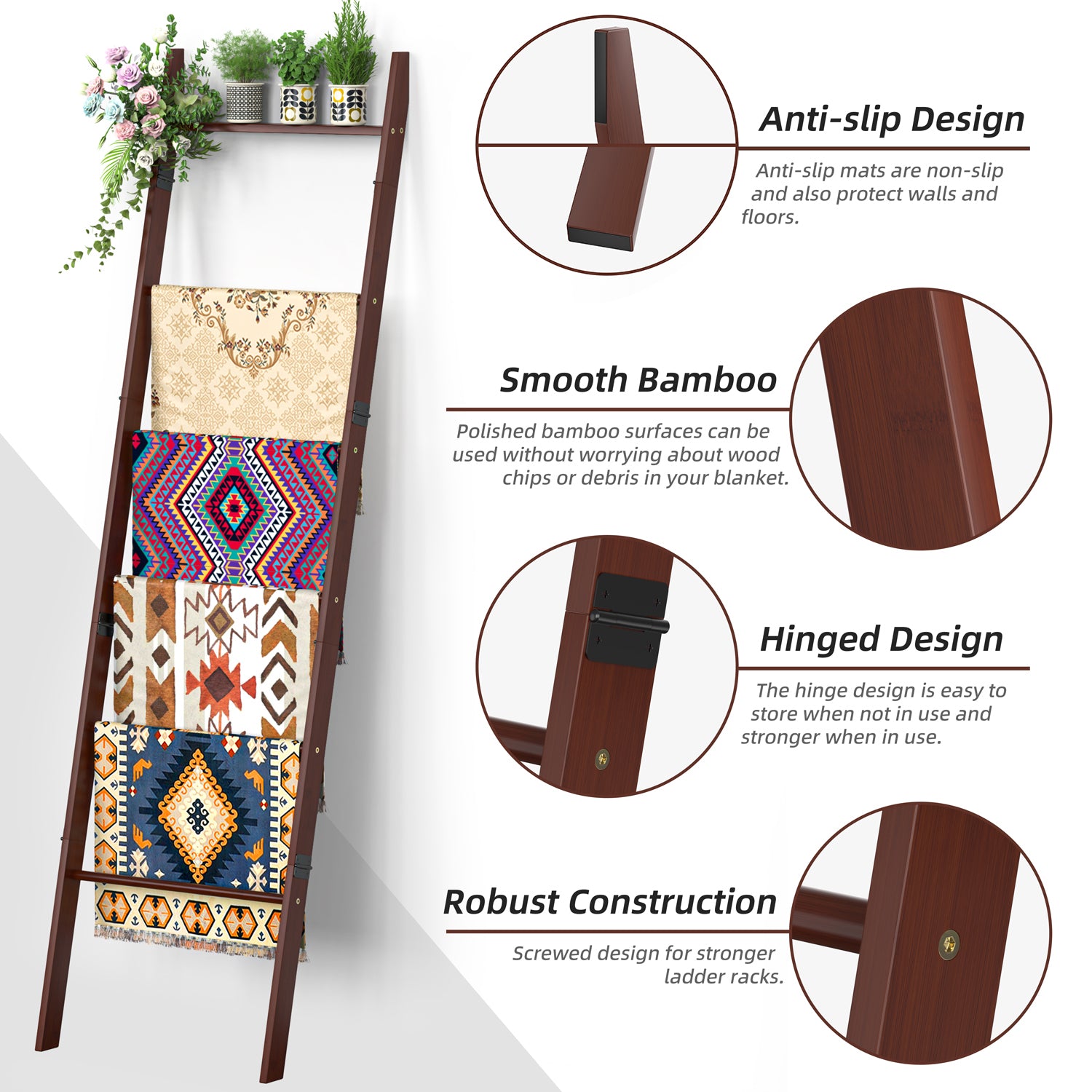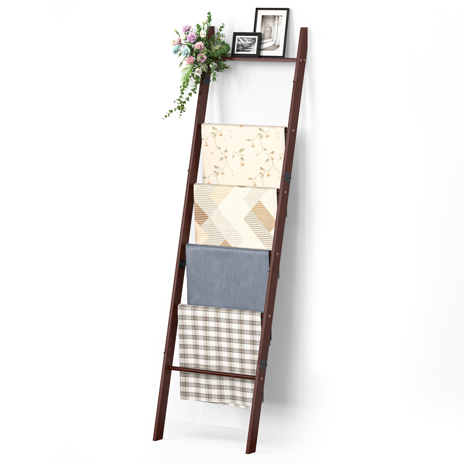 6-Tier Wall Leaning Blanket Ladder Shelf (Brown)