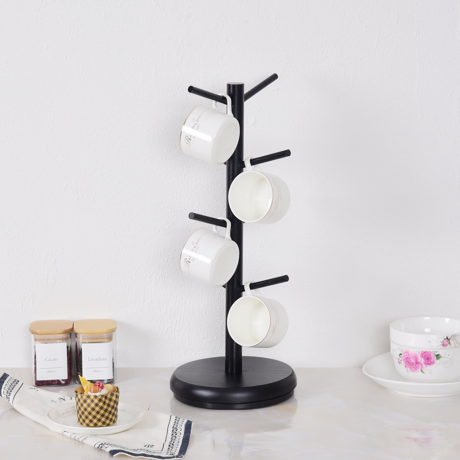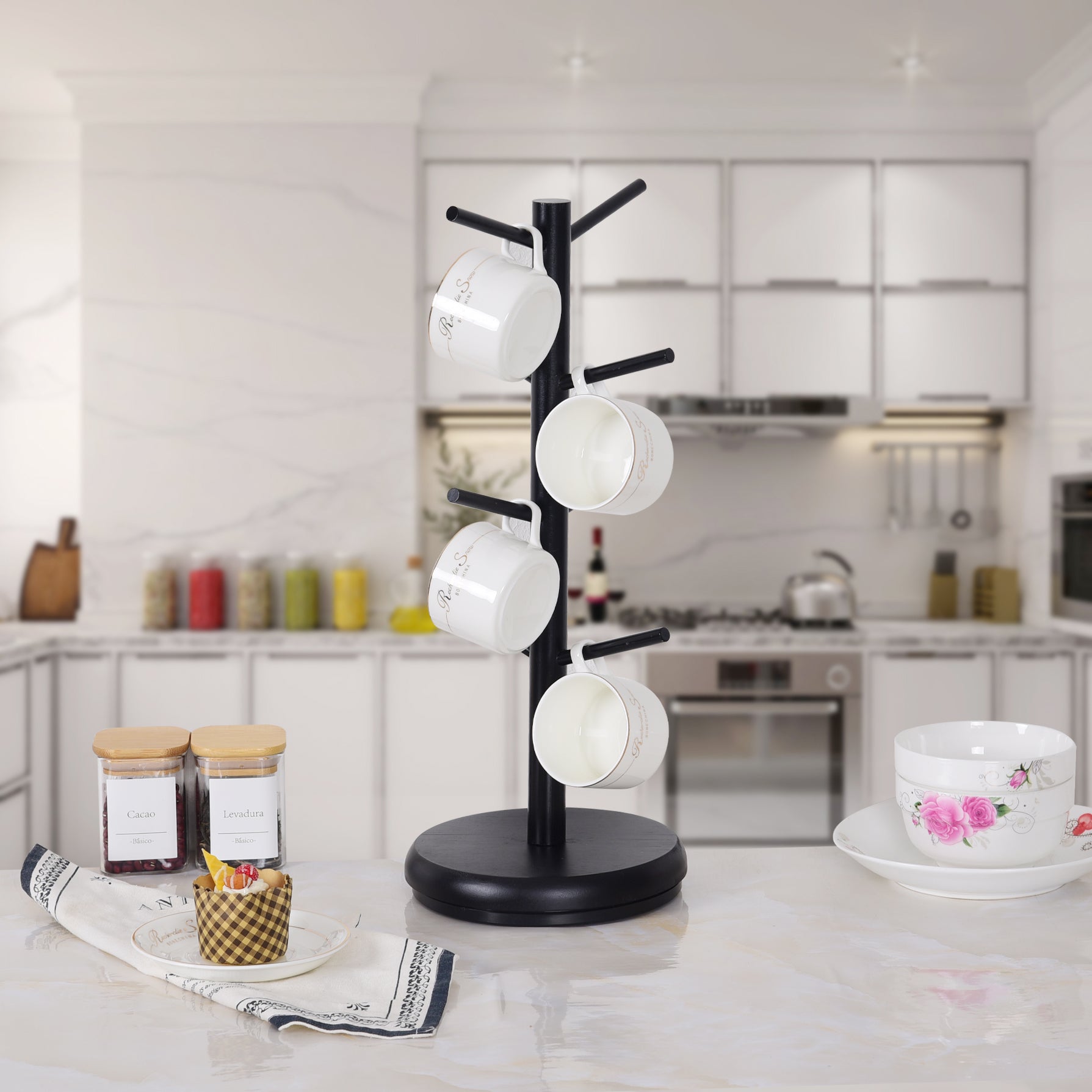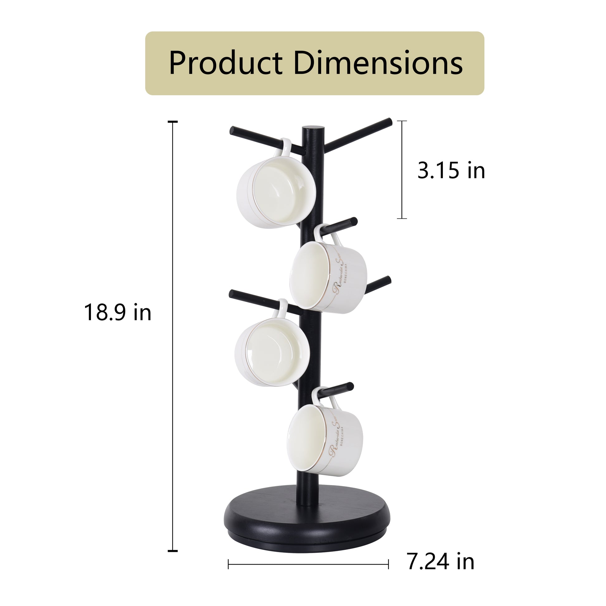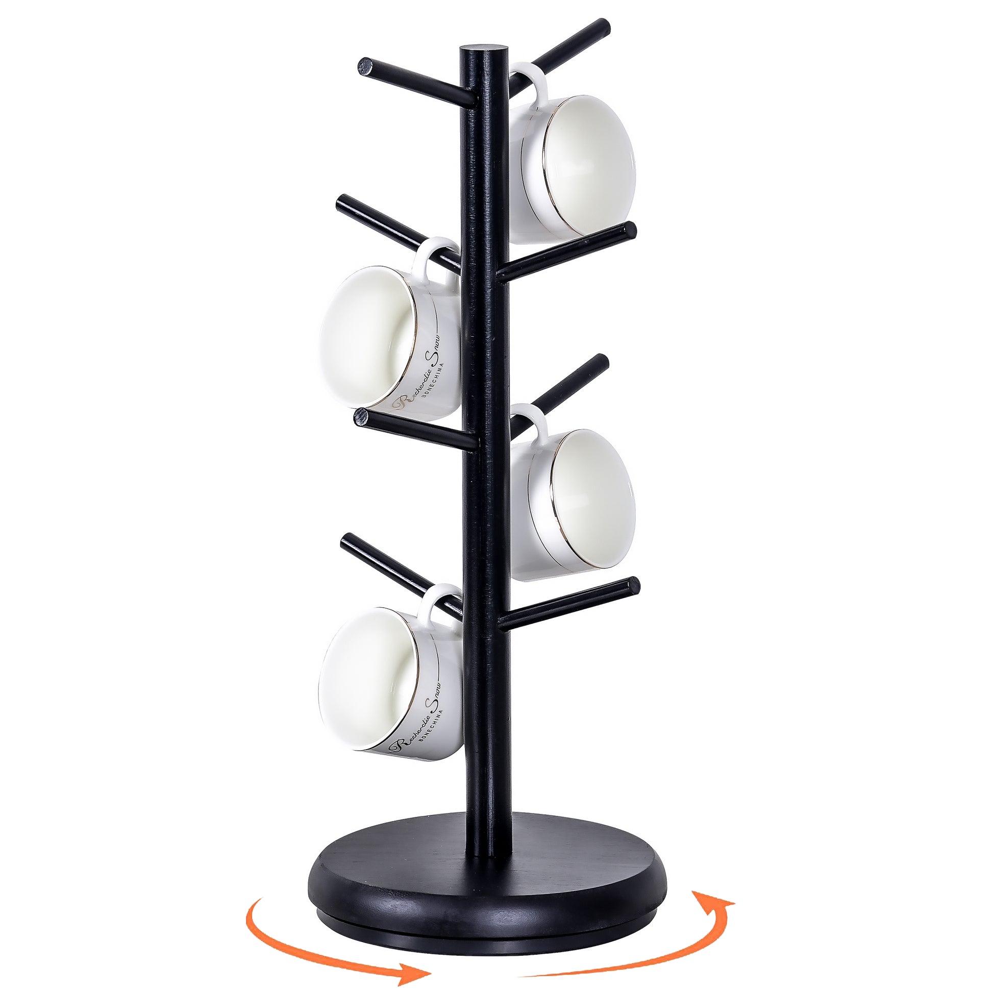 8 Hooks Bamboo Coffee Mug Tree Rotating Coffee Cup Holder (Black)