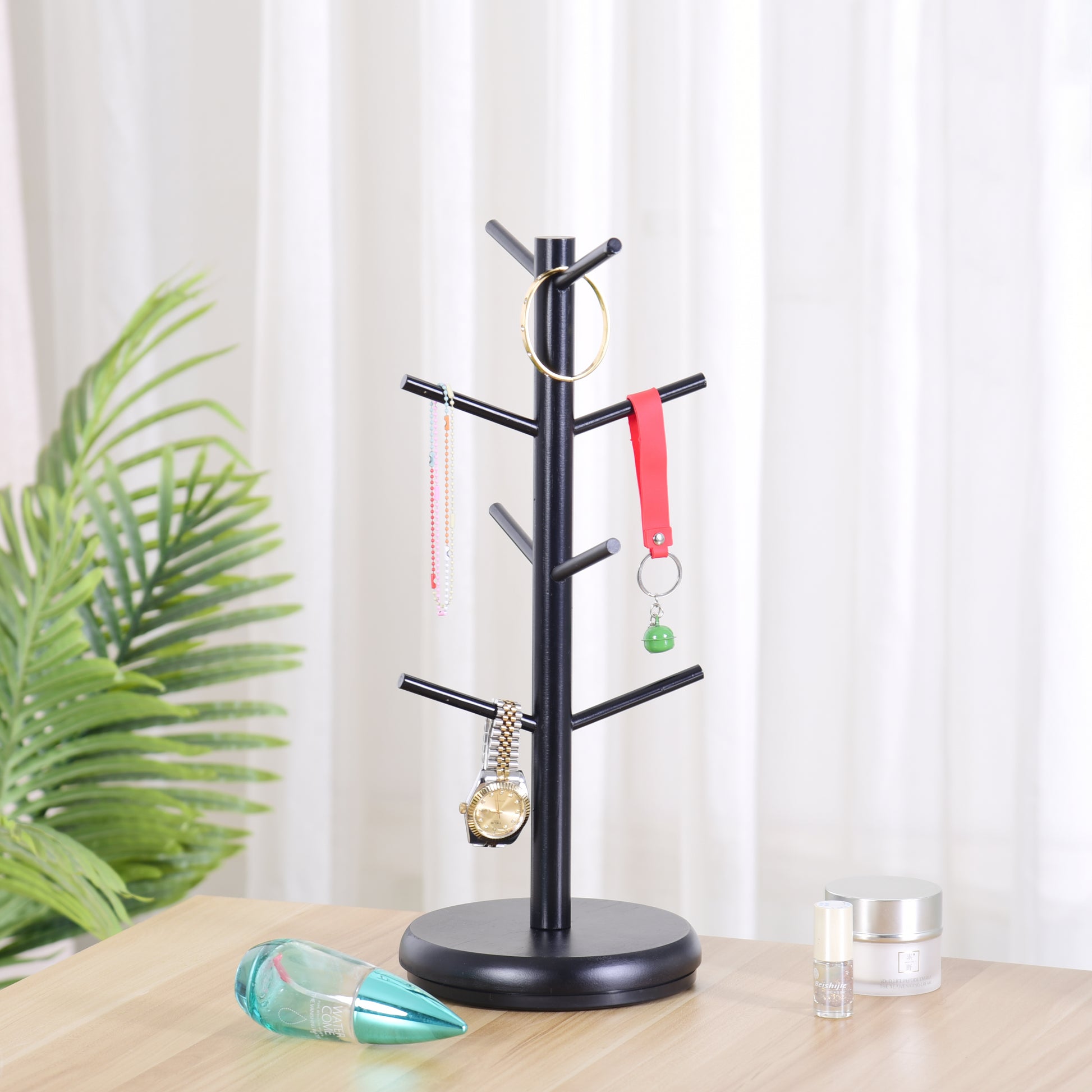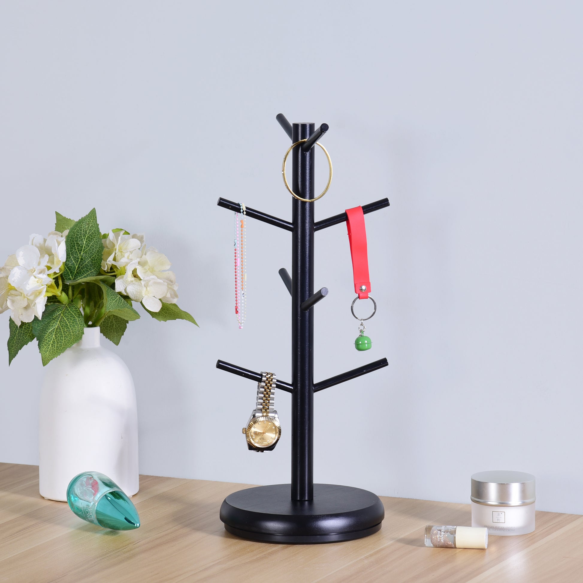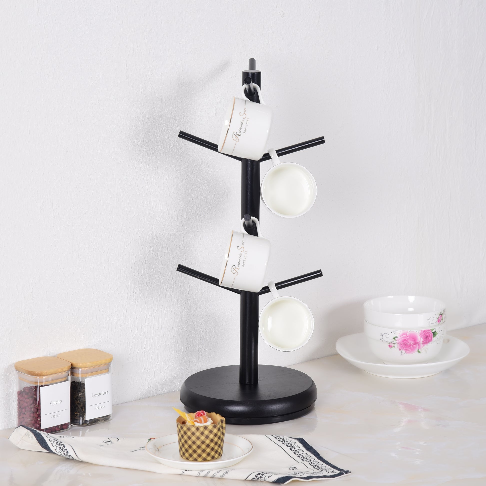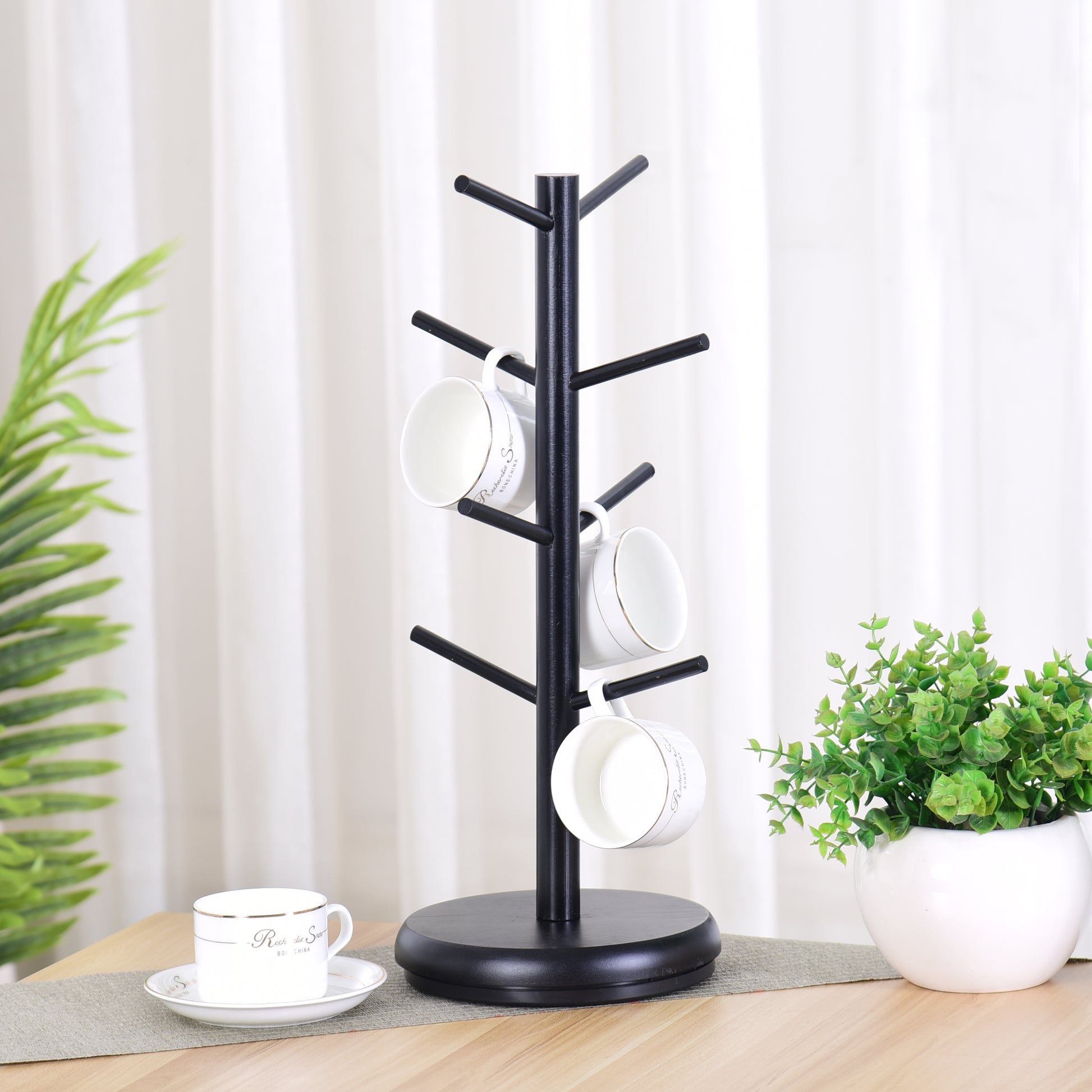 8 Hooks Bamboo Coffee Mug Tree Rotating Coffee Cup Holder (Black)