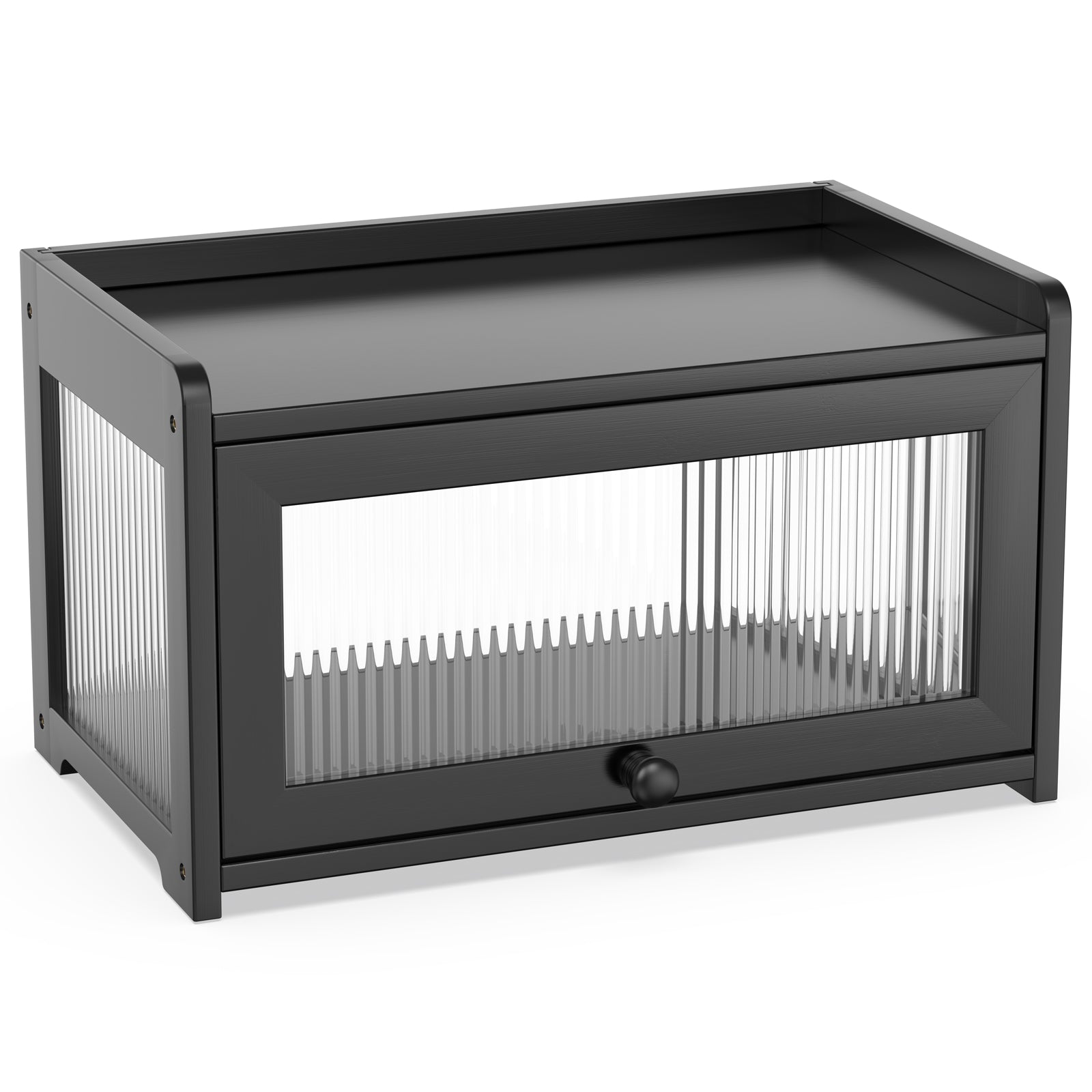 Bamboo Bread Box with 3 Sides Wavy & Back Clear Window (Black)