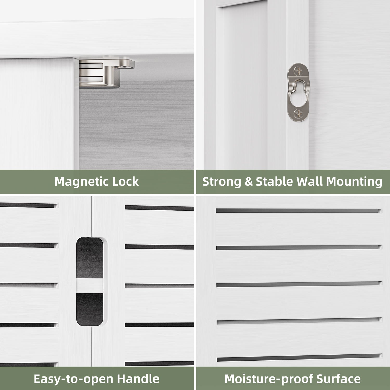 - Stable Wall Mounting - With 2 wall-mounting kits on the back, it can be mounted stably and you don’t need to worry that it will fall off the wall. The double doors are closed by a magnet lock, which prevents items from falling off and keeps your naughty cats out.