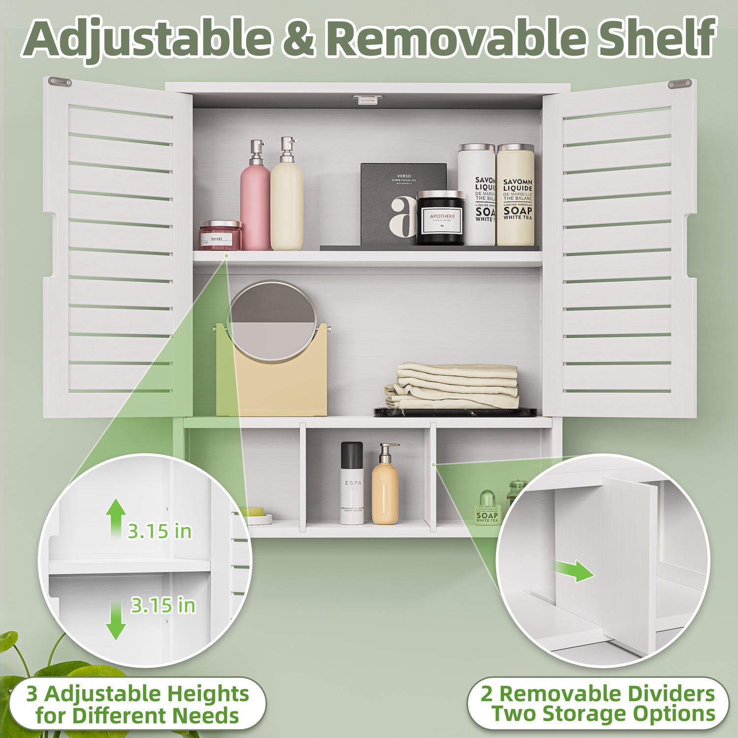 Removable Bamboo Two-Door Wall Mounted Bathroom Cabinet (White)
